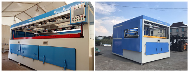 2. ACF系列大高速吸塑機。是市場上使用吸塑機型號,在自動化程度、產量、人工使用量、機器價格親民,較為容易接受的吸塑機設備。工藝步驟:卷材自動拉料、加熱、真空吸塑、整版裁切、裁斷機分切。